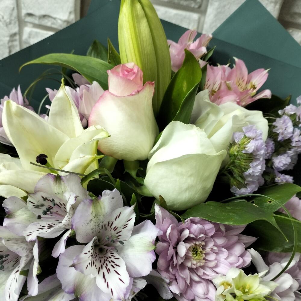 Категорий: Альстромерии, Кустовые розы, Лилии, Розы, Хризантемы