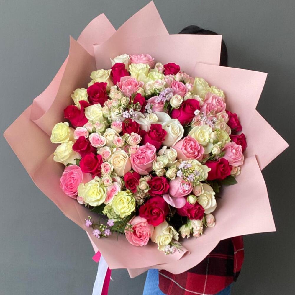 Гвоздики, Кустовые розы, Пионовидные розы, Розы