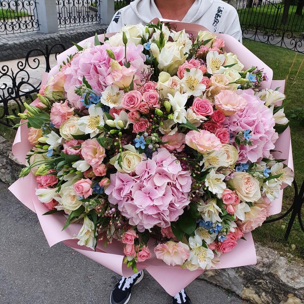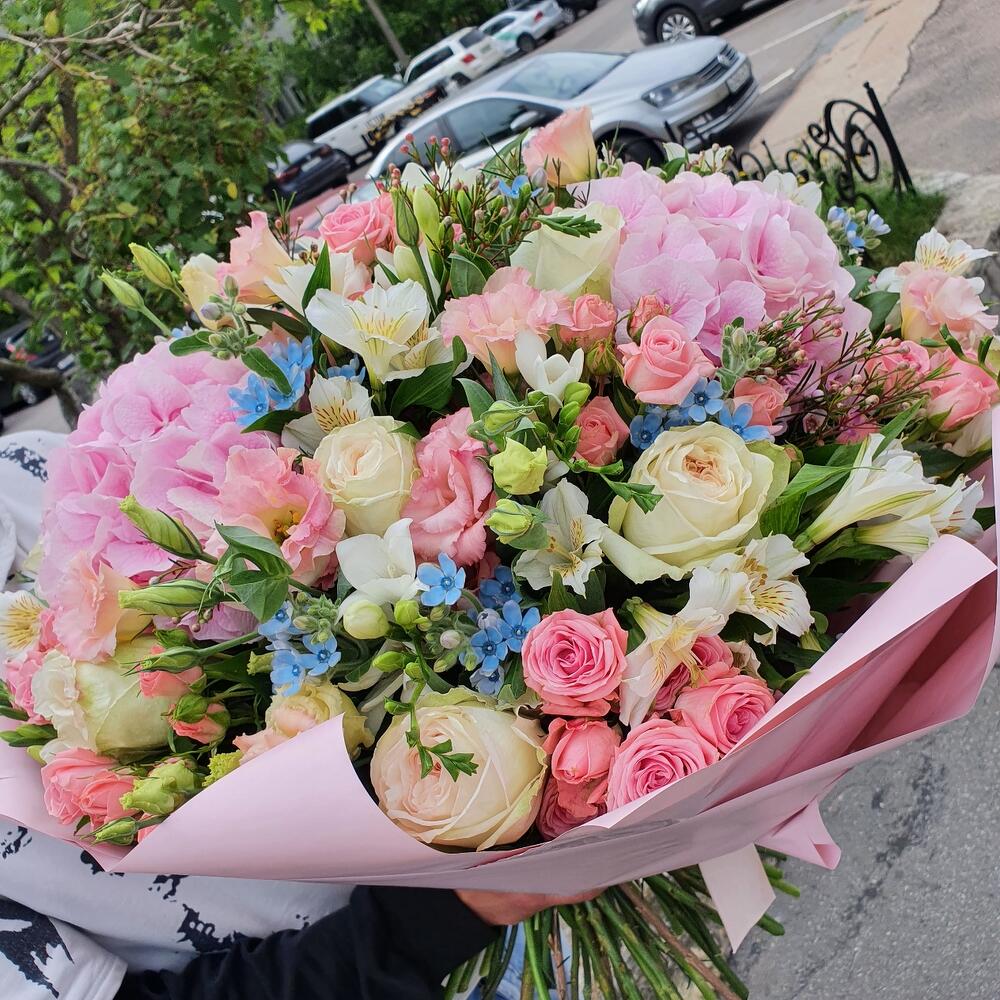 Альстромерии, Кустовые розы, Лизиантусы, Пионовидные розы, Розы, Ромашки