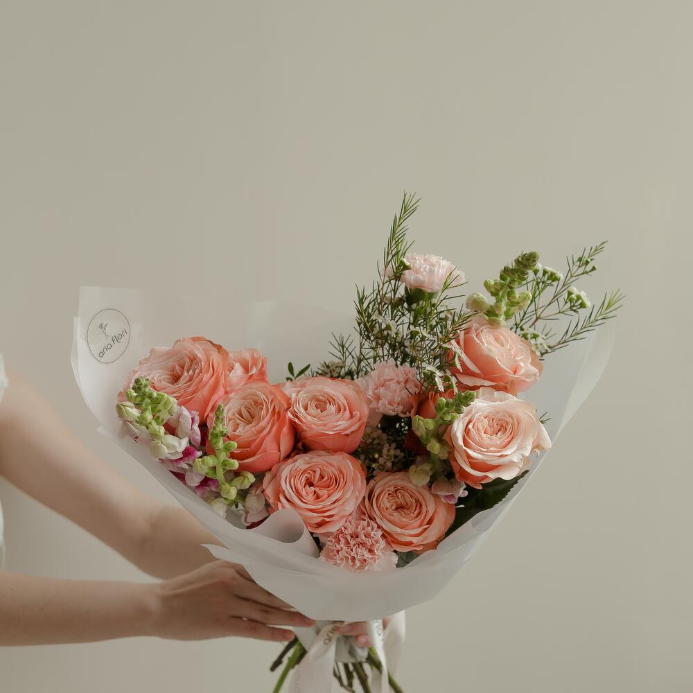 Роза Эквадор – 9 шт.Гвоздика – 4 шт.Фисташка – 3 шт.Хамелациум – 1 шт.Упаковка дизайнерская – 1 шт.антиринум – 4 шт.любовь флориста – 1 шт.подкормка для цветов – 1 шт.инструкция по уходу за цветочками – 1 шт.