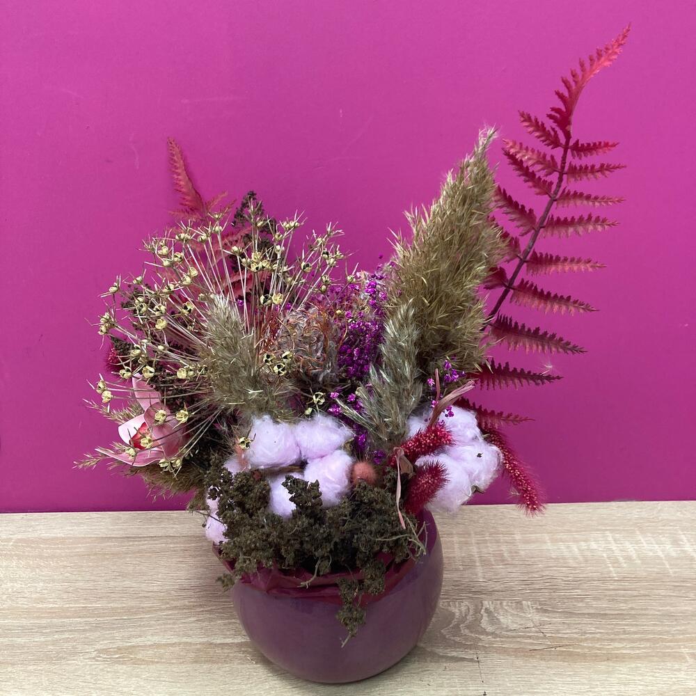 Композиция из экзотических сухоцветов в керамическом кашпо