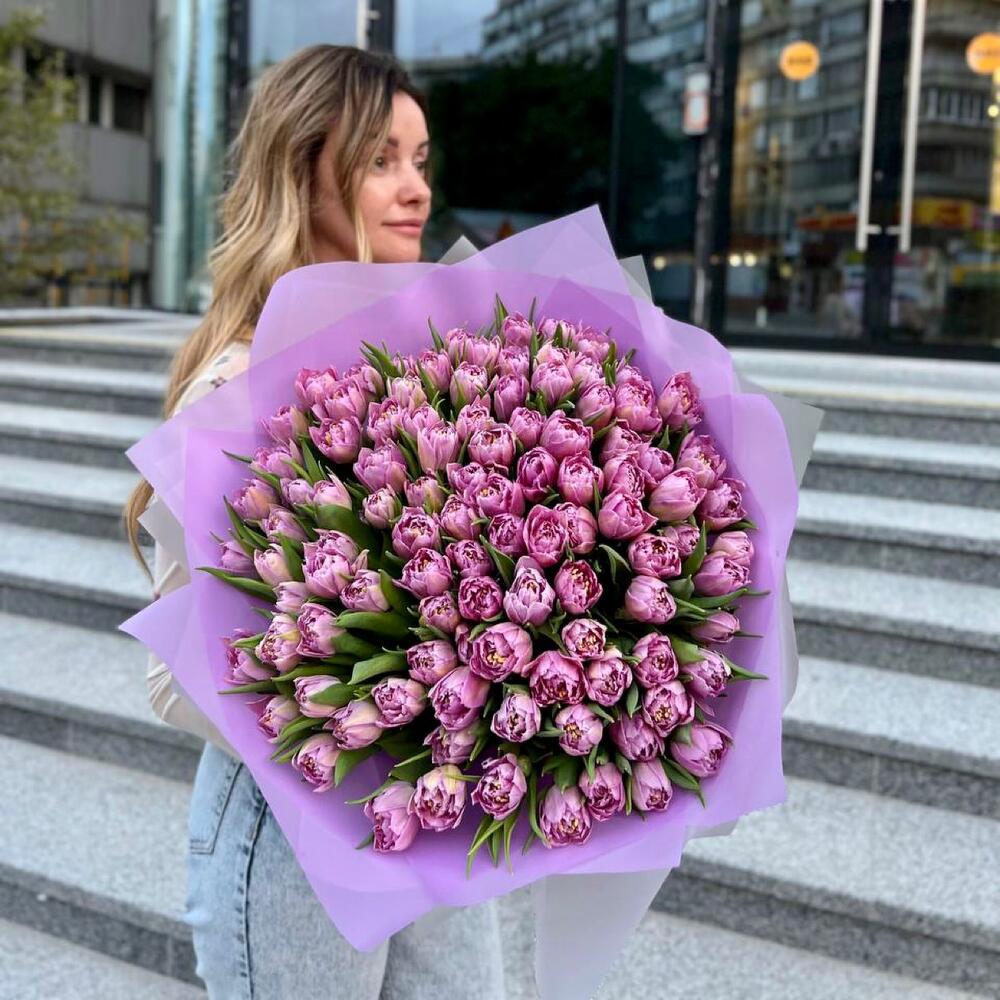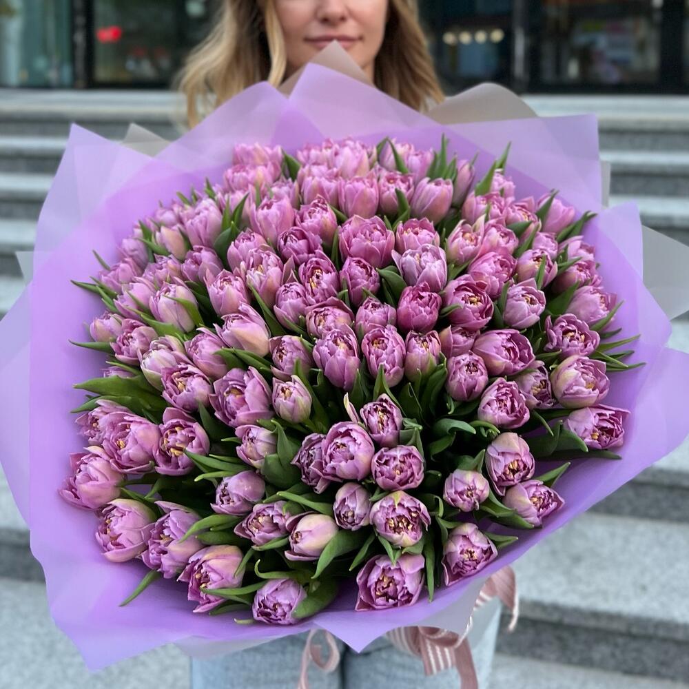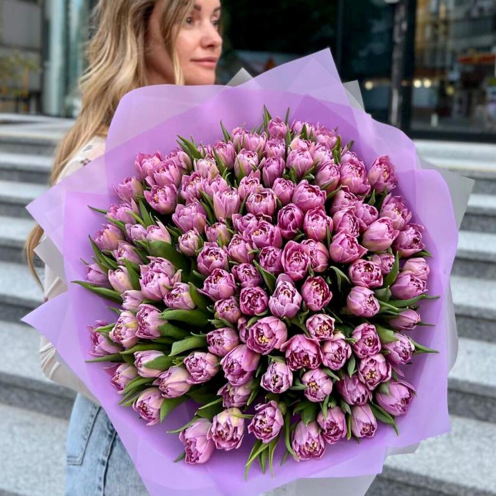 15 сиреневых пионовидных тюльпанов