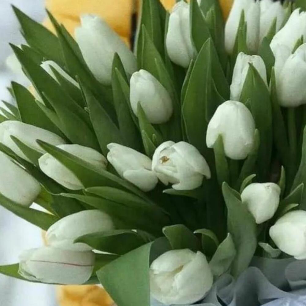 15 белых тюльпанов в плёнке